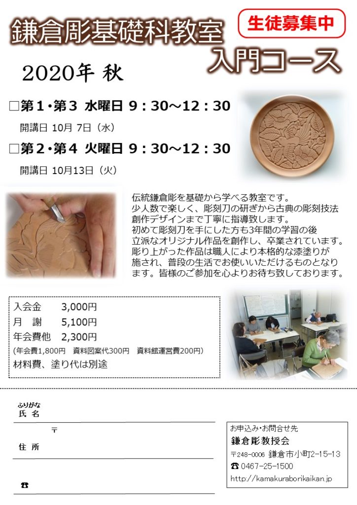 • 秋開講 鎌倉彫基礎科入門コース