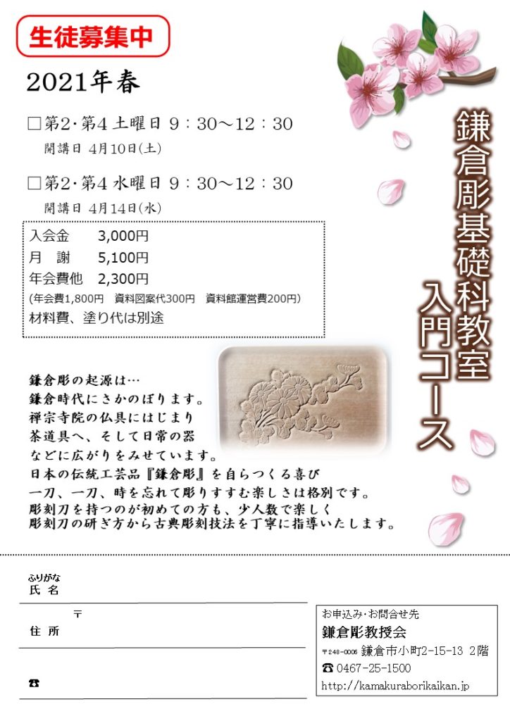 春開講 鎌倉彫基礎科入門コース
